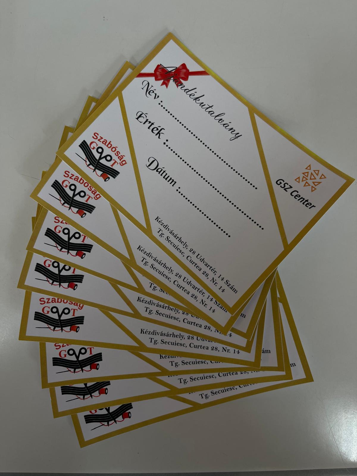 • Personalizare completă: Ajustăm voucherele cadou în funcție de nevoile dvs., fie că este vorba de design, culori sau text.